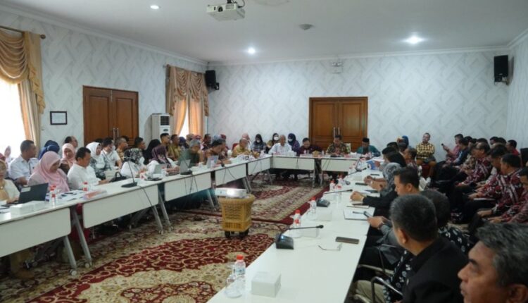 Bupati Banyuasin H. Askolani didampingi Wabup H.Slamet Somosentono membuka rapat persiapan Harganas ke -30 Kabupaten Banyuasin Sumatera Selatan yang diadakan di ruang rapat Guest House Rumah Dinas Bupati Banyuasin, Kamis (09/03).