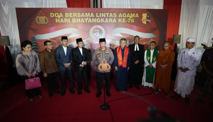 Mabes Polri menggelar kegiatan doa bersama lintas agama ditengah momentum peringatan Hari Ulang Tahun (HUT) Bhayangkara ke-76. Acara ini merupakan upaya ikhtiar batiniah untuk kebaikan Bangsa Indonesia.