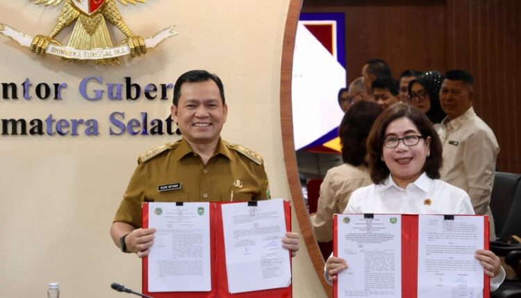 PALEMBANG, rakyatrepbulika.com | Penjabat (Pj) Gubernur Sumatera Selatan (Sumsel) Elen Setiadi, S.H.  M.S.E bersama Kepala Kantor Wilayah Badan Pertanahan Nasional Provinsi Sumsel Asnawati menandatangani Kesepakatan bersama antara Pemprov Sumsel dengan Kantor Wilayah (Kanwil) Badan Pertanahan Nasional (BPN) Provinsi Sumsel Bidang Pertanahan. Kesepakatan tersebut ditandatangai oleh keduanya bertrmpat di Ruang Rapat Gubernur Sumsel, Selasa (4/2/2025).