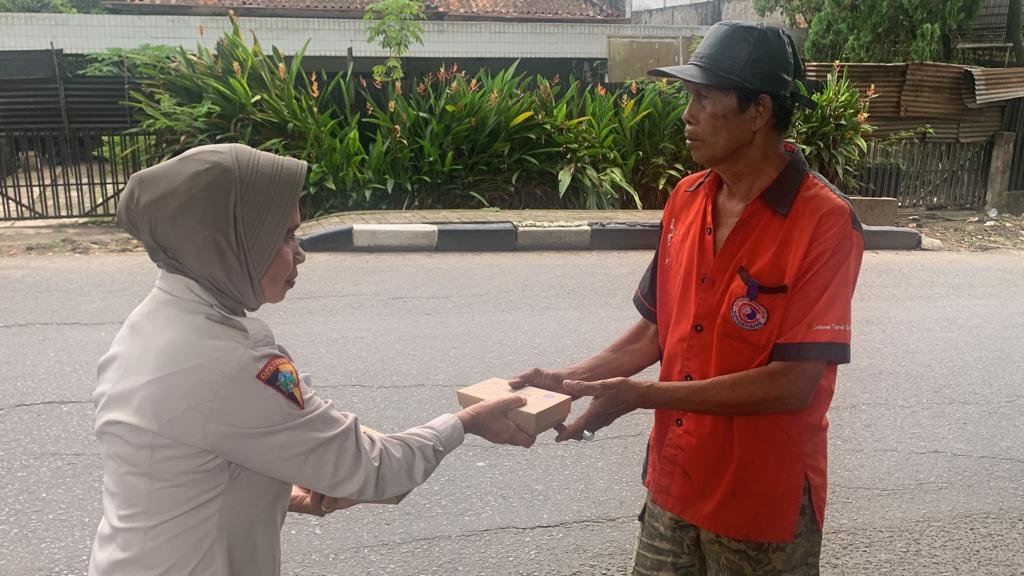 Personil Biro Ops Polda Sumsel melaksanakan Program Jum’at Berkah dengan berbagi makanan berupa nasi kotak di seputaran jalan jenderal Sudirman, jalan merdeka dan seputaran masjid AT-Taqwa Palembang sekitaran pukul 11.30 win sebelum sholat Jum’at berjamaah dilaksanakan. (2/12/2022).