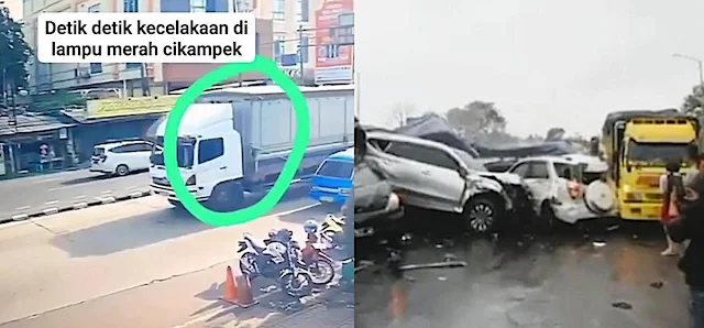 Kasi Humas Polres Karawang, Ipda Cep Wildan mengatakan kecelakaan maut tersebut bermula ketika truk wing box bernopol D-9326-YU melaju dari arah Cikampek menuju Karawang gagal berhenti lampu merah Cikampek.
