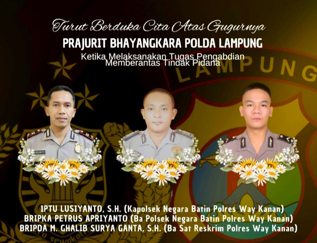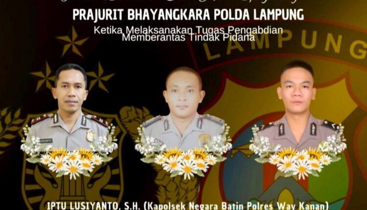 Ketiga anggota polisi yang meninggal adalah Kapolsek Negara Batin Iptu Lusiyanto, Bripka Petrus, anggota Polsek Negara Batin dan Bripda Ghalib, anggota Satuan Reskrim Polres Way Kanan.