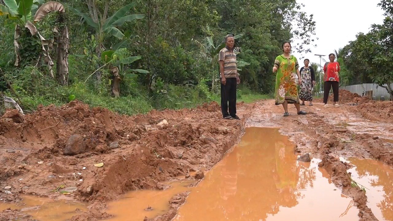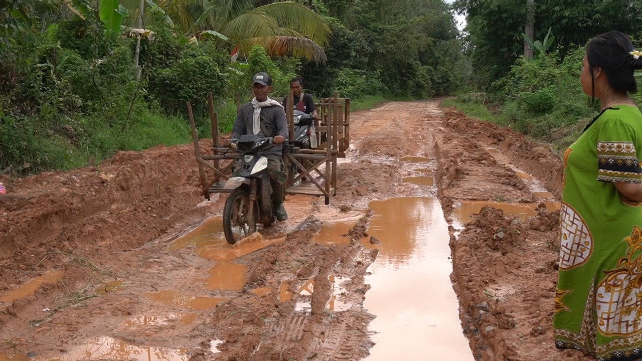 “Warga terpaksa ekstra berhati-hati saat melintas. Jalan yang licin dan berlumpur kerap menyebabkan pengendara tergelincir atau terjatuh. Kerusakan jalan semakin parah karena sering dilalui kendaraan besar pengangkut galian tanah. Kalau hujan, jalan tidak bisa dilewati. Sudah sering motor jatuh, apalagi kalau malam,” ujar Fatma.