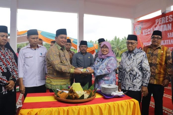 BANYUASIN – Bupati Banyuasin, H. Askolani, SH.,MH bersama Wakil Bupati Banyuasin, H. Slamet Somosentono, SH meresmikan Kantor Camat Karang Agung Ilir dan melaksanakan kegiatan rutin safari jumat bertempat di Kantor Camat Karang Agung Ilir dan Masjid Nurul Huda Desa Jati Sari, Jumat (10/3).