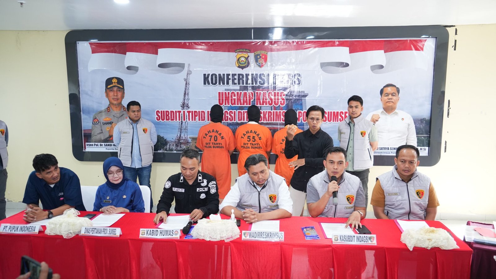 Barang bukti yang diamankan meliputi 9 ton pupuk NPK Phonska, 1 ton pupuk Urea, satu unit truk Isuzu, dokumen kendaraan, bukti transaksi perbankan, serta tiga unit telepon genggam milik para tersangka. Seluruh tersangka kini telah diamankan di Mapolda Sumsel untuk menjalani proses hukum lebih lanjut.