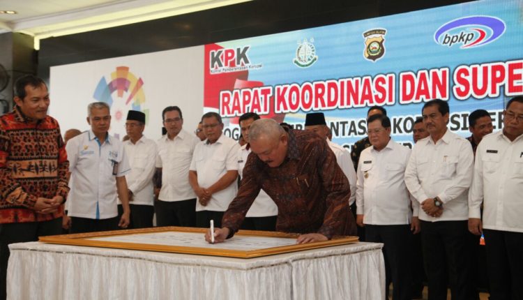 Komisi Pemberantasan Korupsi (KPK) RI melakukan pendampingan terhadap tata kelola pemerintahan daerah guna mencegah terjadinya tindak pidana korupsi. Memperkuat konsolidasi dan komitmen tersebut, KPK menggelar rapat koordinasi serta penandatanganan komitmen dan rencana aksi program pemberantasan korupsi terintegrasi Provinsi Sumsel di Griya Agung Palembang, Rabu (4/4/2018).