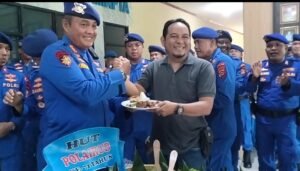 Wartawan Berikan Tumpeng Dalam Perayaan HUT Ditpolair Polda Sumsel
