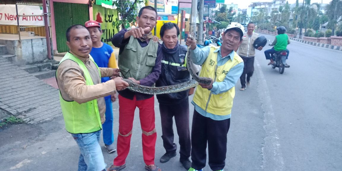 Ular Piton Berkeliaran di Tengah Kota Prabumulih